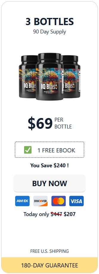 The iq blast pro price starts at $49 per bottle for the 6 bottle package, with single bottles priced at $69. Bulk purchases offer 30% savings and include free US shipping. Buying from the IQ Blast Pro official site, ensures the best deals.