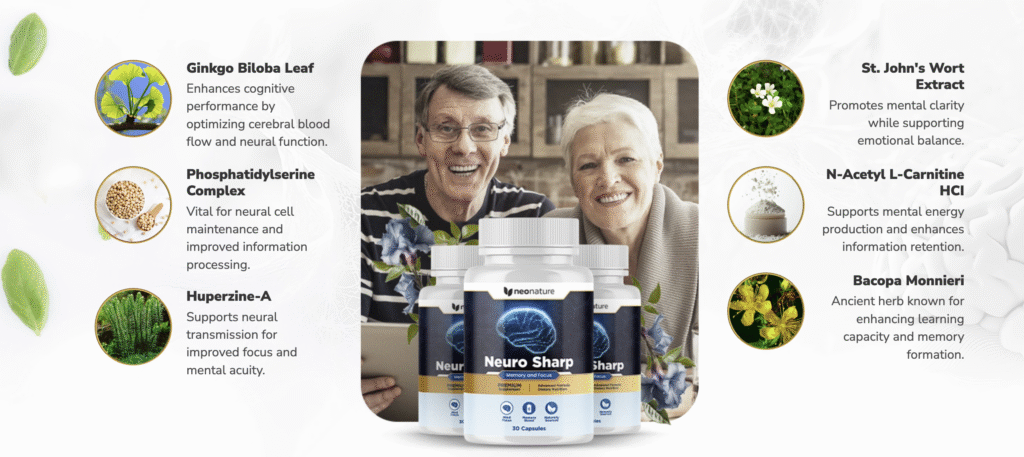 Neuro Sharp is a natural supplement developed to support long-term brain health, with a particular focus on enhancing cognitive performance. It is formulated with a combination of proven natural ingredients such as Ginkgo Biloba, Phosphatidylserine, and Bacopa extract — compounds known for supporting mental clarity, improving memory retention, and strengthening overall brain function. These ingredients help promote healthier neuron communication and better blood flow to the brain, which may result in sharper focus, faster thinking, and improved information recall.