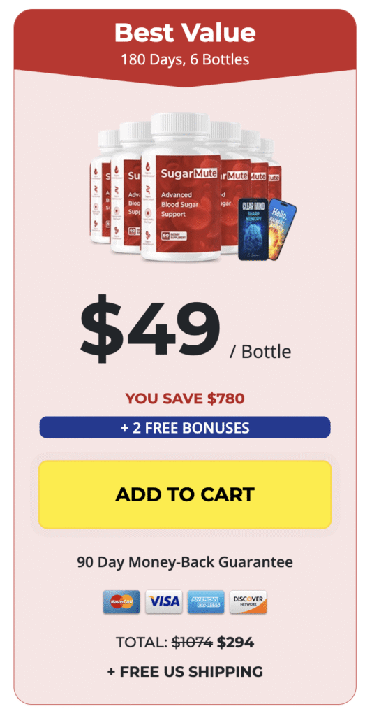 At this moment you can order SugarMute supplement for 73% OFF + FREE Shipping. This is a Limited-Time Offer and it won’t be available for long.